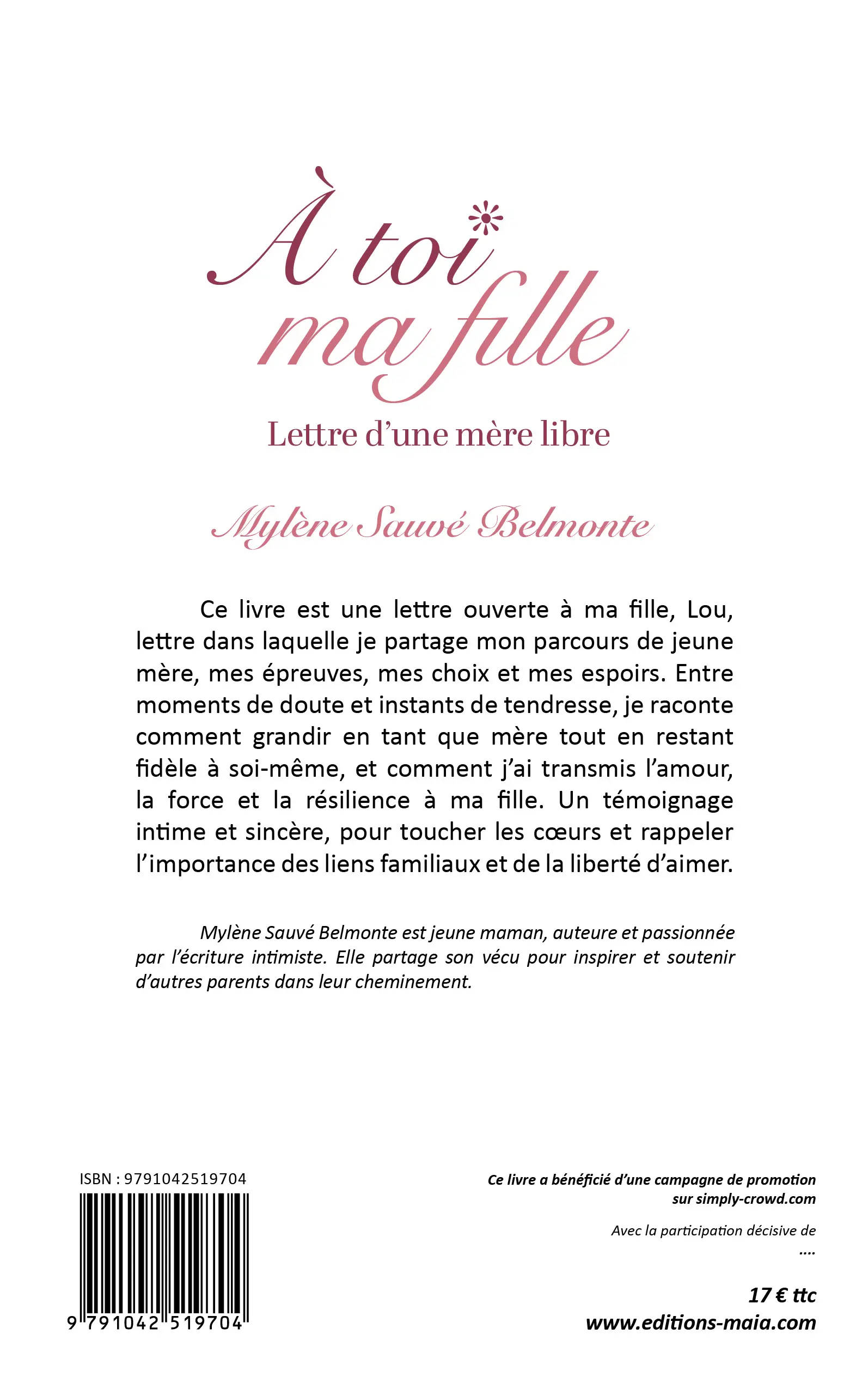 Ce livre s’adresse aux mères, aux filles, aux survivantes, aux âmes sensibles. Participer à cette campagne, c’est soutenir une parole vraie, rare et nécessaire.