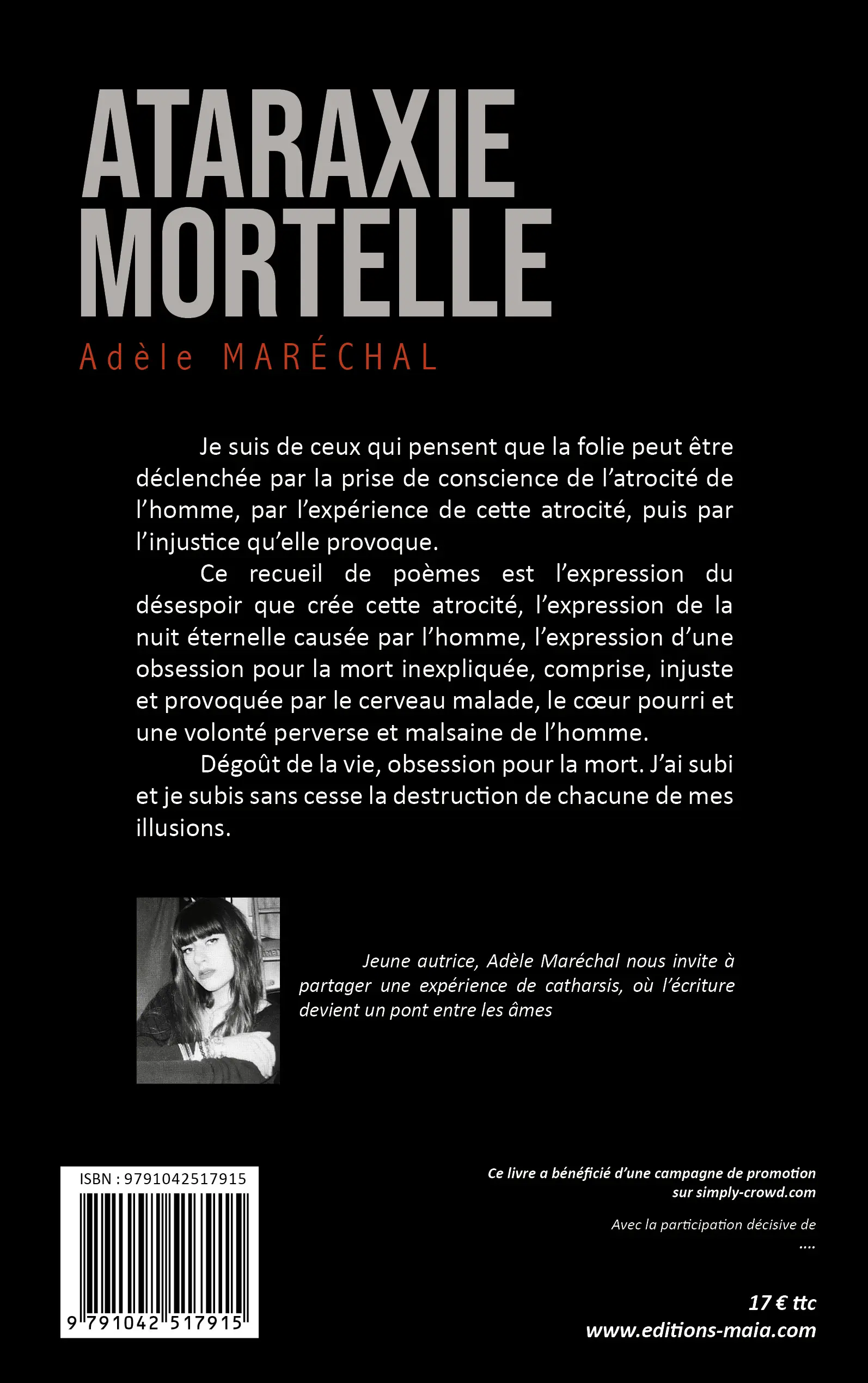 Ce recueil a été écrit de manière chronologique, les poèmes respectant la filiation de mes noirceurs.