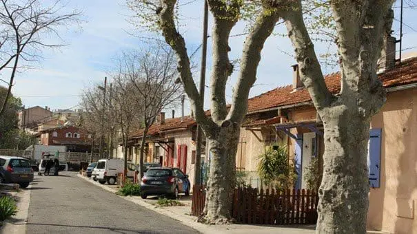 La cité, reliée au boulevard de Saint-Loup par l’Avenue Florian, faisait elle-même petit village. Toutefois, elle ne pouvait rivaliser avec le grand village où, comme en ville, les commerces divers offraient pratiquement tout ce dont on pouvait avoir besoin. Boulangeries, pharmacies, magasins d’alimentation, coiffeurs, cordonnier, bars, mercerie, librairie, et même le grand cinéma, La Cascade, avec les meilleurs films tout juste sortis. Tout comme en ville, Il ne manquait rien ! On trouvait aussi du poisson frais du jour chez Rosette, la poissonnière, sans avoir à se déplacer jusque sur le Vieux Port, et on pouvait même aller chez le docteur ou chez le dentiste sans descendre en ville… Tout ! En plus, la route nationale qui devient, à un moment, boulevard de Saint-Loup, avec ses bus qui relient le centre-ville de Marseille à Aubagne, et le charroi(1) des heures de « pointe », fait du village une solide place de communication. Une vraie ville, quoi !
