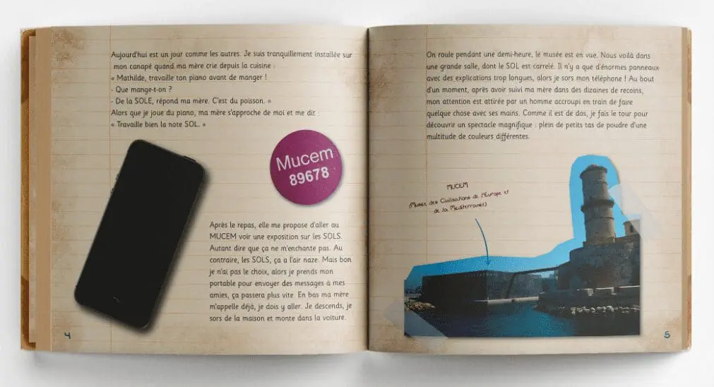 Ce livre a été imaginé, rédigé et illustré par des élèves d’écoles marseillaises sur la base d’interventions scientifiques en collaboration avec les enseignants. Il comprend 7 chapitres illustrant chaque étape du voyage de Mathilde, à la manière d’un carnet de voyage et d’expériences. Y sont regroupées 76 pages, couvertures incluses, et de nombreuses illustrations qui sont l’œuvre des élèves impliqués dans le projet.