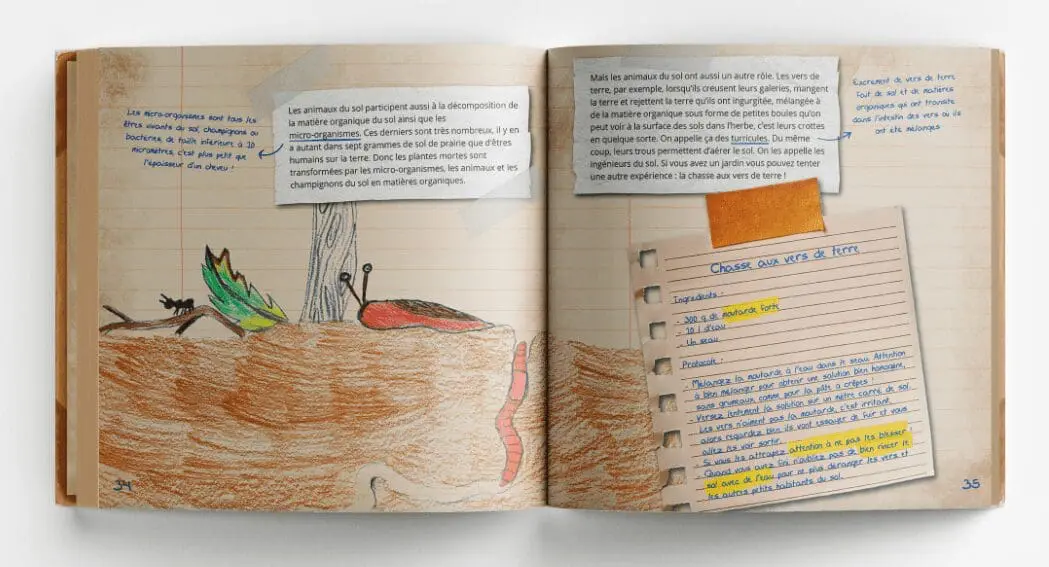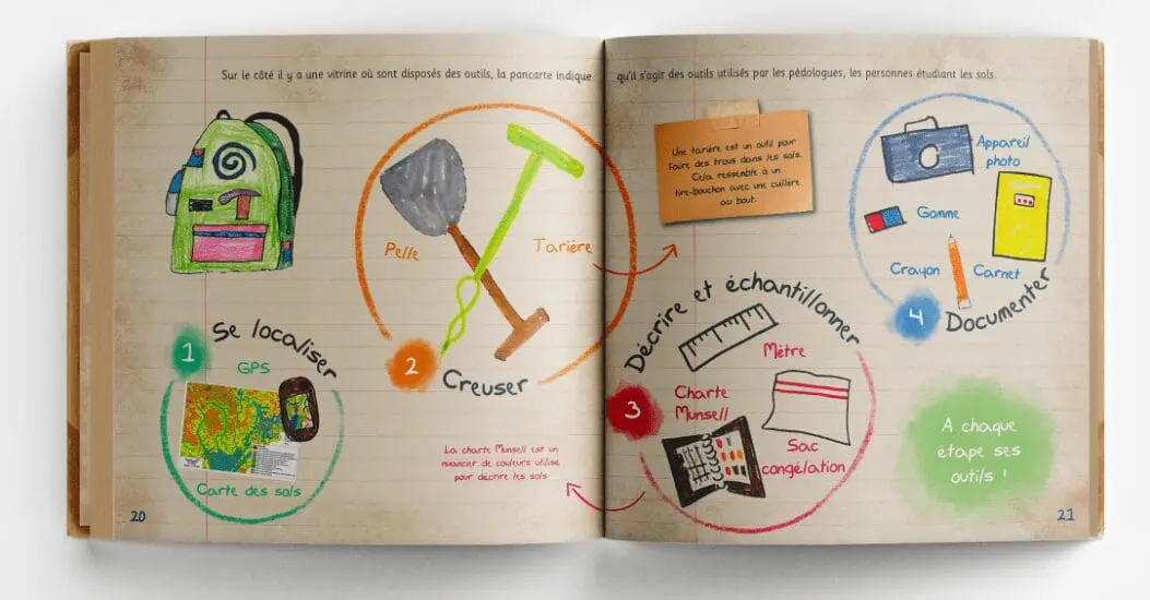 A travers ce récit d’aventure enfantine, La Clef des Sols invite les enfants de 8 à 12 ans à la découverte de la beauté, de l’intérêt et de la complexité de cette fine couche terrestre sur laquelle nous vivons tous, et dont nous dépendons. Car, bien que souvent ignorés, les sols regorgent de vie, de processus et de ressources sans lesquels nous n’existerions pas. Pourtant, en 2021, il n’existe pas (ou très peu) de livre jeunesse francophone de ce type. Sensibiliser le jeune public, par la lecture et l’imaginaire, à l’importance des sols et aux enjeux de leur protection nous semble ainsi primordial.