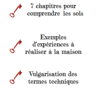 Après avoir défini ce qu’est un sol et ce qui, en son sein, lui permet de se parer d’une large palette de couleur (Chapitre 1), le jeune lecteur découvrira la diversité des sols à travers le monde (Chapitre 2). Cette introduction passée, il sera alors question de leur formation, résultat de l’interaction entre le climat, la végétation et la faune du sol, sur un matériau géologique lui-même variable (Chapitre 3). Par exemple, une expérience simple et reproductible chez soi, en cuisine, permet d’illustrer un aspect particulièrement ardu : la dissolution et la précipitation des minéraux. Le Chapitre 4 explicite également la nécessité de classifier les sols en les nommant et donne l’origine de certains de ces noms pour mieux les retenir. Enfin, les Chapitres 5 et 6 présentent successivement les services rendus par les sols et les menaces que l’homme fait malgré tout peser sur eux.