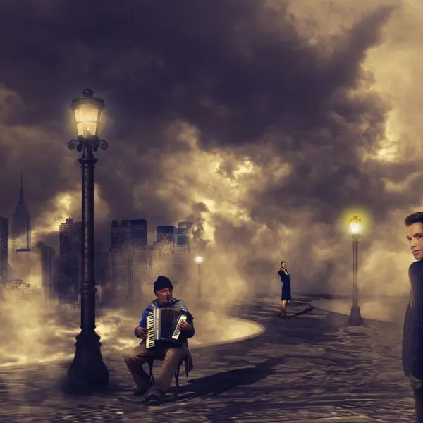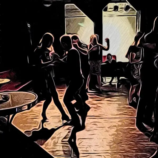 Des couples discutent au bar ou attablés, en buvant un verre de vin rouge ou une bière. Des bouteilles de champagne vides qui contiennent des guirlandes de leds scintillantes sont disposées sur les tables. Une odeur de cuisine aussi lui arrive aux narines, une sorte de bœuf et d’oignons. À une table, une femme mange un petit chausson, plat inconnu, mais qui lui semble plutôt appétissant. Sur la piste, il compte une vingtaine de couples qui tangue en cœur. Le parquet est de qualité moyenne, mais semble être massif et ancien. Ainsi il a déjà pu entendre un danseur sortir de piste en disant : « Ça colle un peu ce soir ». Vu d’ensemble, le bal est comme un organisme vivant géant qui se meut et change en permanence en accompagnant une musique lente que Charlie ne connaît pas.