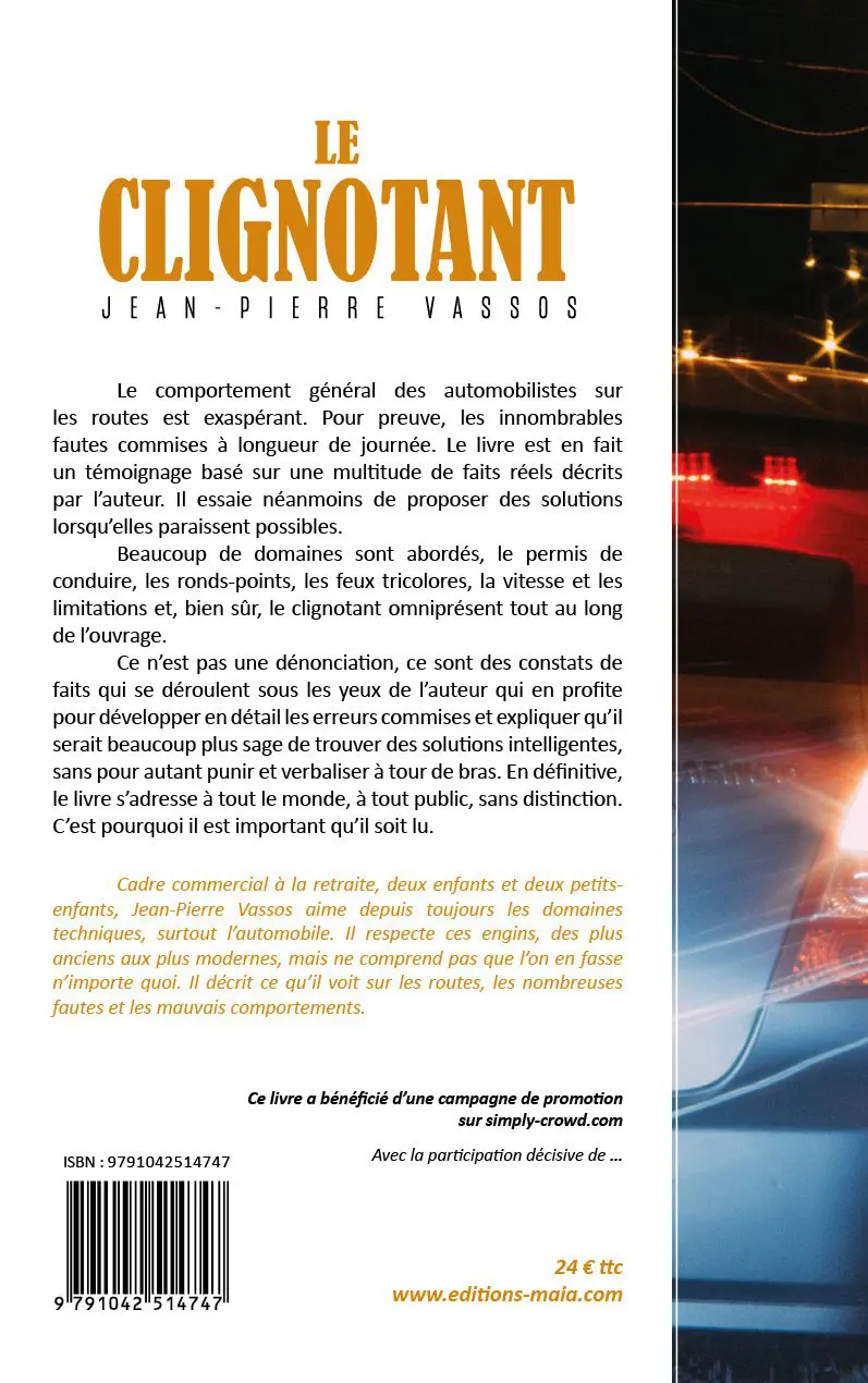 Ayant parcouru de nombreux kilomètres sur toutes les routes de France suite aux diverses mutations professionnelles, j’ai toujours été subjugué par la désinvolture et l’inattention des conducteurs. A tel point que depuis longtemps je pensais écrire sur tout ce que je voyais et ressentais quand j’étais moi même au volant. Mais les soucis du travail m’empêchaient d’avoir le temps nécessaire. Grâce à la retraite j’ai pu prendre mon temps et me consacrer enfin à cet ouvrage. Je ne juge pas et je ne dis pas que tous les conducteurs sont des chauffards, mais il reste que le nombre de fautes commises à longueur de journée dans la circulation est impressionnant. Je m’adresse donc à toute personne titulaire du permis de conduire et prenant le volant, fréquemment ou non, dans le but d’ interpeller.