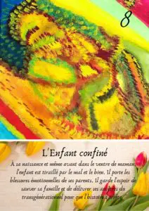La jeune artiste peintre que je suis aujourd’hui a dessiné sa vie en lâchant prise et en écoutant son âme. Ce qui m’a permis de comprendre que chaque expérience que nous vivons dans cette vie n’est que des histoires que nous répétons pour soigner les blessures d’antan pour soi, mais aussi pour ceux qui traversent notre vie. Elles nous obligent à nous reconnecter à notre esprit, à notre lucidité et à notre pouvoir de clairvoyance pour guérir ce qui ne l’avait pas été jadis. Être confiné m’a rapprochée de ma véritable nature, de la source, de la divinité et de mes anges gardiens. Des êtres d’ici ou là-bas m’ont inspiré pour réaliser et synchroniser ce livre et son jeu. Vous vous reconnaîtrez !