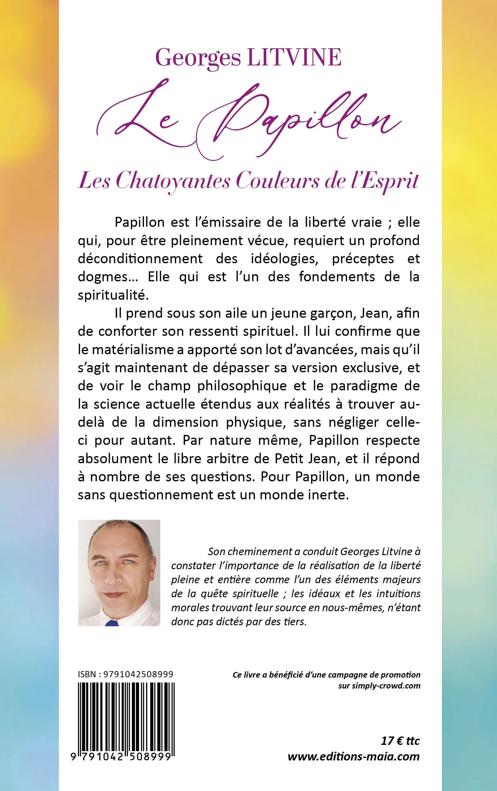Le livre : Papillon est l’émissaire de la Liberté vraie ; il prend sous son aile un jeune garçon, Jean, afin de conforter son ressenti spirituel. Il lui confirme que le matérialisme a apporté son lot d’avancées, mais qu’il s’agit maintenant de dépasser sa version exclusive, et de voir le champ philosophique et le paradigme de la science actuelle étendus aux réalités à trouver au-delà de la dimension physique, sans négliger celle-ci pour autant.