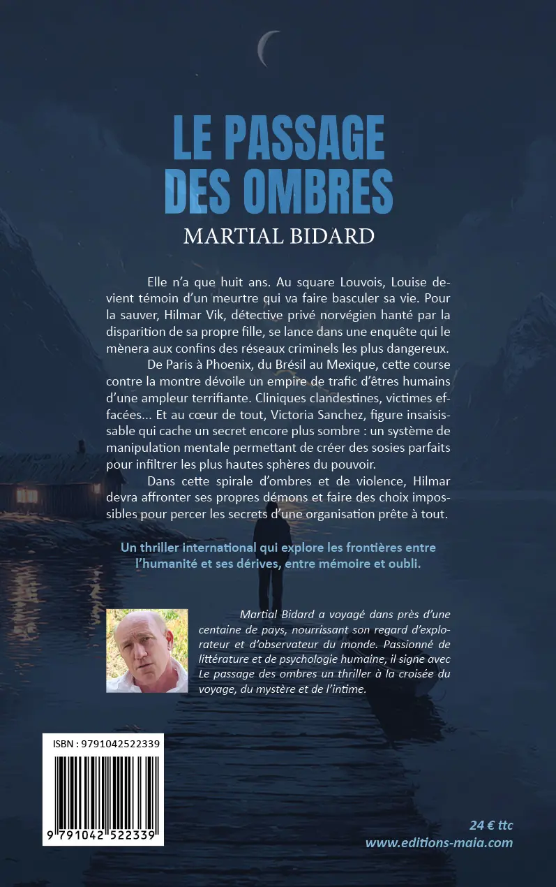 Et si les plus grands crimes se cachaient derrière les façades les plus respectables ? En 50 ans de voyages dans une centaine de pays, j’ai traversé bien des cultures, découvert maintes réalités. Fort de cette expérience unique, j’ai imaginé un thriller international où un père désespéré traque les réseaux les plus dangereux pour sauver une enfant. « Le passage des ombres » vous emmène de Paris au Brésil dans une course contre la montre où chaque lieu révèle ses secrets les plus sombres.