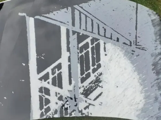 La scène : Page 43, 44. » …La petite courait sur le chemin encore obscurci sous les arbres, dans l’aube naissante. Buisson dormait encore dans son hamac. Sur le côté de son champ de vision, Caroline remarqua tout à coup quelque chose de très grande taille qui bougeait rapidement sur la berge du fleuve. Des figures géométriques de couches de limon, des pentagones irréguliers provoqués par la sécheresse avaient craquelé le sol habituellement boueux et se soulevaient en plaques comme des écailles rabougries. De maigres touffes de roseaux jaunies se desséchaient dans cette partie habituellement marécageuse. La berge du fleuve est une zone d’étude intéressante pour qui sait observer la flore et la faune qui se développent sur l’estran, cette frontière floue entre le liquide et le solide. Caroline et Buisson venaient régulièrement admirer la petite vie discrète qui fourmillait là.
