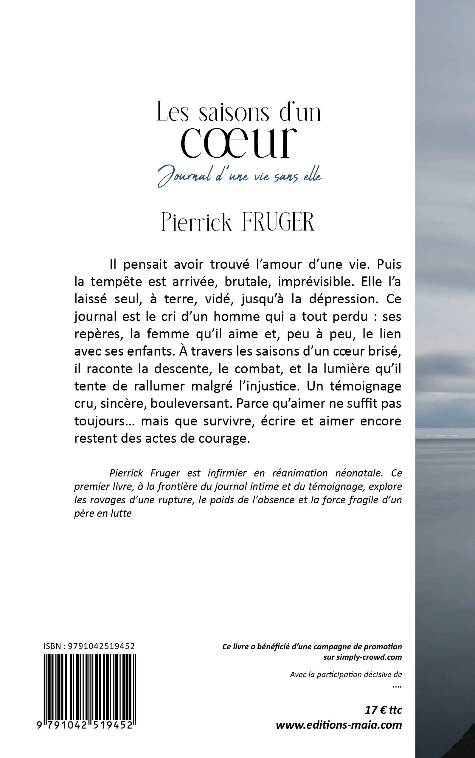 Les saisons d’un cœur est un journal littéraire intime, brut, profondément humain. C’est l’histoire d’un homme confronté à l’abandon, qui tente de reconstruire un lien avec ses enfants, avec lui-même, et avec celle qu’il a perdue. Loin d’un simple récit de rupture, ce livre explore la résilience, la paternité, la solitude, et les renaissances. Écrit dans une langue poétique et vive, il touche quiconque a déjà aimé, douté, espéré. Il s’adresse aux parents séparés, aux âmes cabossées, aux lecteurs sensibles aux mots vrais. Inspiré par la vie réelle, il ne cherche pas la pitié, mais le partage. C’est un cri d’amour silencieux, une déclaration à ceux qu’on n’oublie pas, et une main tendue vers ceux qui cherchent encore à vivre malgré tout.