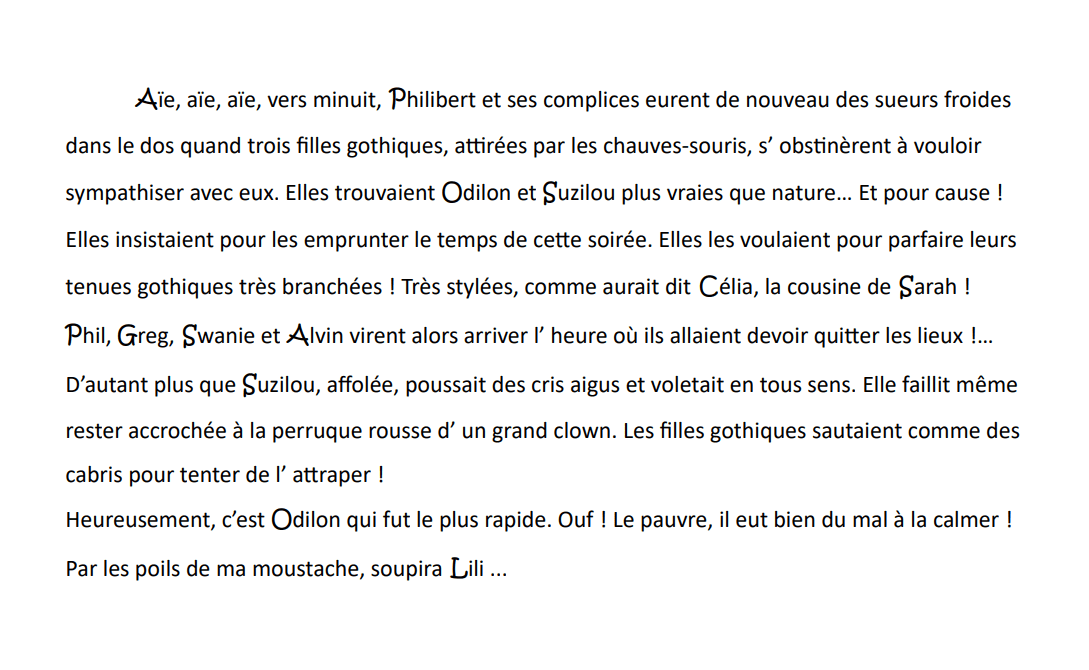 La souricette fera d’insolites rencontres. Suzilou, jeune pipistrelle, deviendra sa meilleure amie. Avec Philibert, Swanie, Rick et Coco, il faut le dire, un brin originaux, Liliane, pour les intimes Lili-la-Hardie, vivra de belles aventures mouvementées. Elle découvrira l’univers étrange des habitués de l’Auberge des Ombres de la Nuit, dans la ville portuaire de Ciscopolis. Elle entendra de bien étranges rumeurs ; mais que se passe-t-il donc dans la clairière du Bois Nardoux, les soirs de pleine lune ?