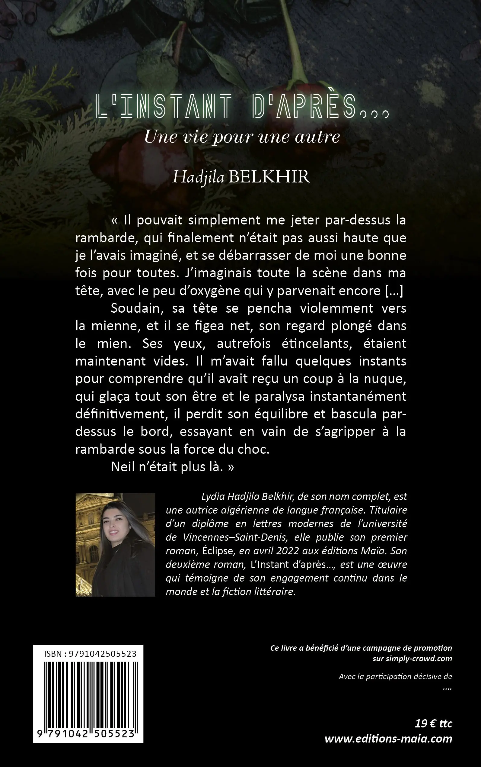 Je vous propose d’être acteur et actrice de la naissance de mon livre en m’aidant à faire de sa parution prochaine, avec les Editions Maïa, un succès. Plus les préventes seront nombreuses, plus mon livre sera promu et diffusé. En retour, vous serez présents dans le livre en page de remerciements et vous recevrez le livre en avant-première, frais de port inclus !