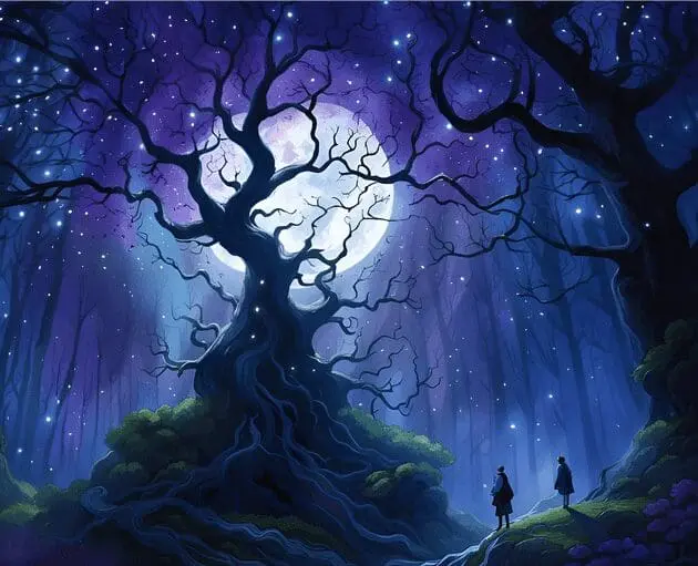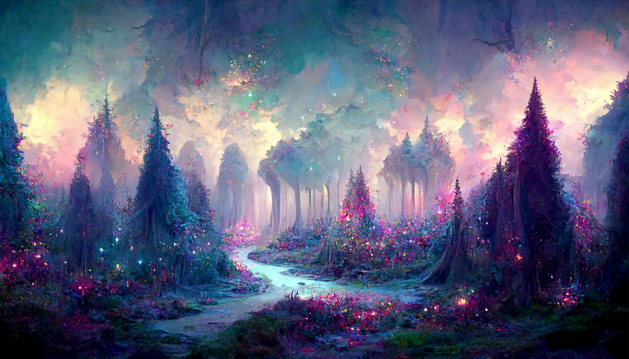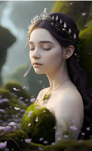 Après avoir dit bonjour à presque tout le monde, notre petite princesse passe les portes en bois grandes ouvertes du village, qui n’est pas très grand il faut l’avouer, s’assied sur l’une des grosses pierres qui longent les grands remparts de bois de la petite ville et commence à jouer avec tout ce qu’elle trouve par terre, un caillou, des feuilles et quelques branches de bois. Elle fabrique des armes avec et s’invente des histoires merveilleuses de princesse guerrière qui sauverait son village de vilains monstres qui viendrait l’attaquer. Il faut dire qu’elle a une imagination incroyable malgré son jeune âge. Elle est aussi très intelligente, créative et surtout très agile. Elle grimpe aux arbres comme personne, elle n’a pas peur de se cacher pendant des heures et observer son environnement pour mieux surgir et surprendre ses amis. Rien ne peut perturber notre petite Majesty. Sauf peut-être … Un chuchotement qui se fait entendre au loin et qui éveille sa curiosité. Un léger son doux et distinct, comme un son mélodieux. Majesty est très intriguée. Elle tend l’oreille. Elle a très envie de savoir d’où cela peut-il bien venir. Elle se retourne mais plus rien. Le silence. Elle se dit que ça venait certainement de son imagination ou du village, que ce n’était sans doute rien et continue donc de s’amuser. Mais le son revient, un peu plus fort cette fois-ci. Elle se retourne à nouveau et se rend compte que ça vient de la forêt. Elle est perplexe car elle sait qu’elle a l’interdiction formelle de s’approcher de celle-ci. Mais la curiosité d’une enfant de 8 ans est plus forte qu’une interdiction. Elle regarde dans le village si personne ne la voit et s’avance doucement en direction des voix qui semblent bien venir de la forêt. Tout en surveillant le village elle continue de marcher. Plus elle s’approche de la forêt plus les sons s’intensifient et ressemblent bien à de jolis chants mélodieux et doux. Un dernier coup d’œil au village et Majesty s’engouffre à travers les bois. »