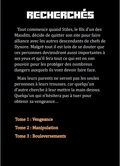 A 13 ans j’ai eu envie de mettre en forme une histoire qui me trottait dans la tête, pour lui donner vie. Ainsi est né « VENGEANCE », le 1er tome de « Recherchés ».
